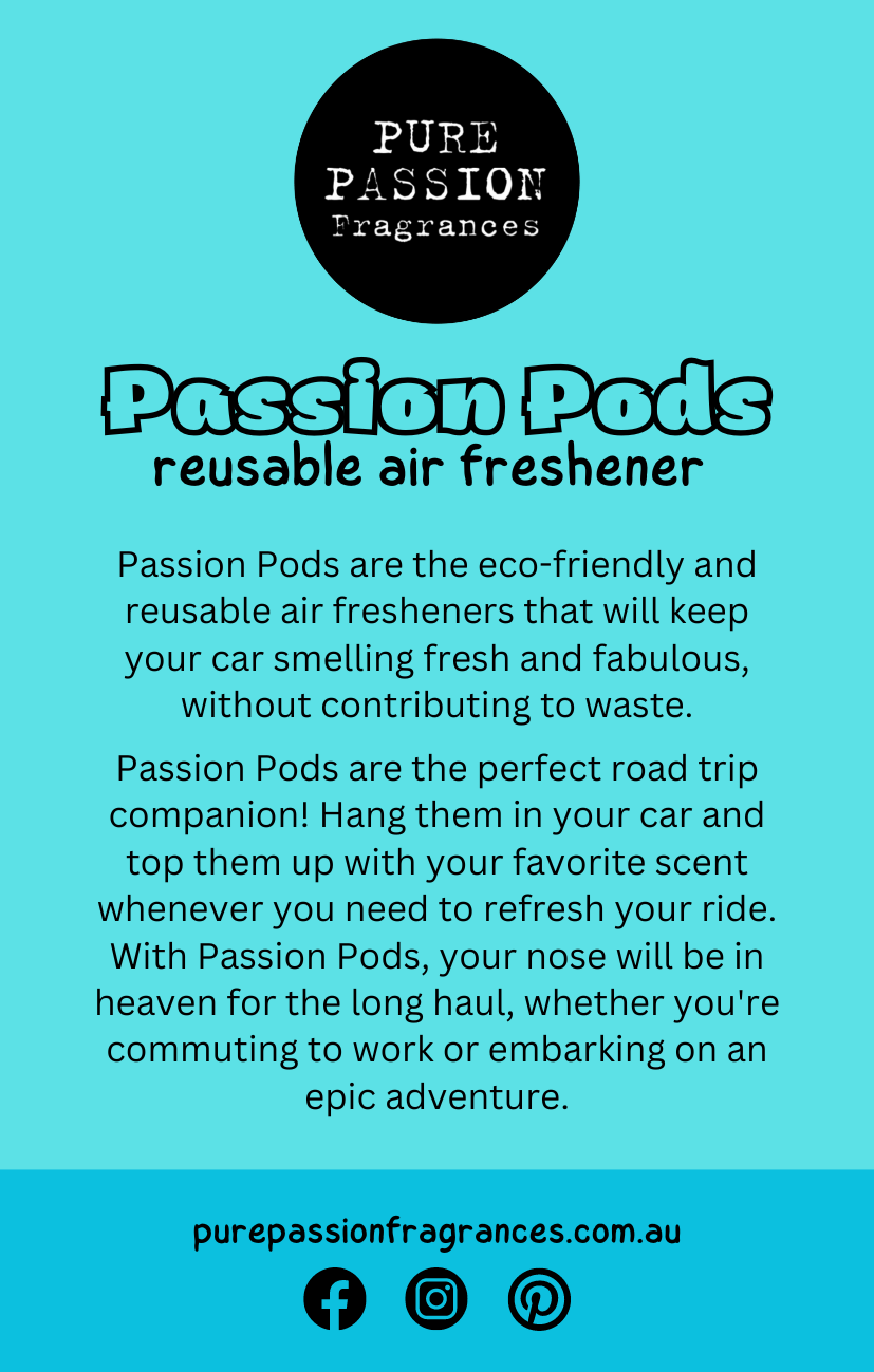 Passion Pods are the eco-friendly and reusable air fresheners that will keep your car smelling fresh and fabulous, without contributing to waste.